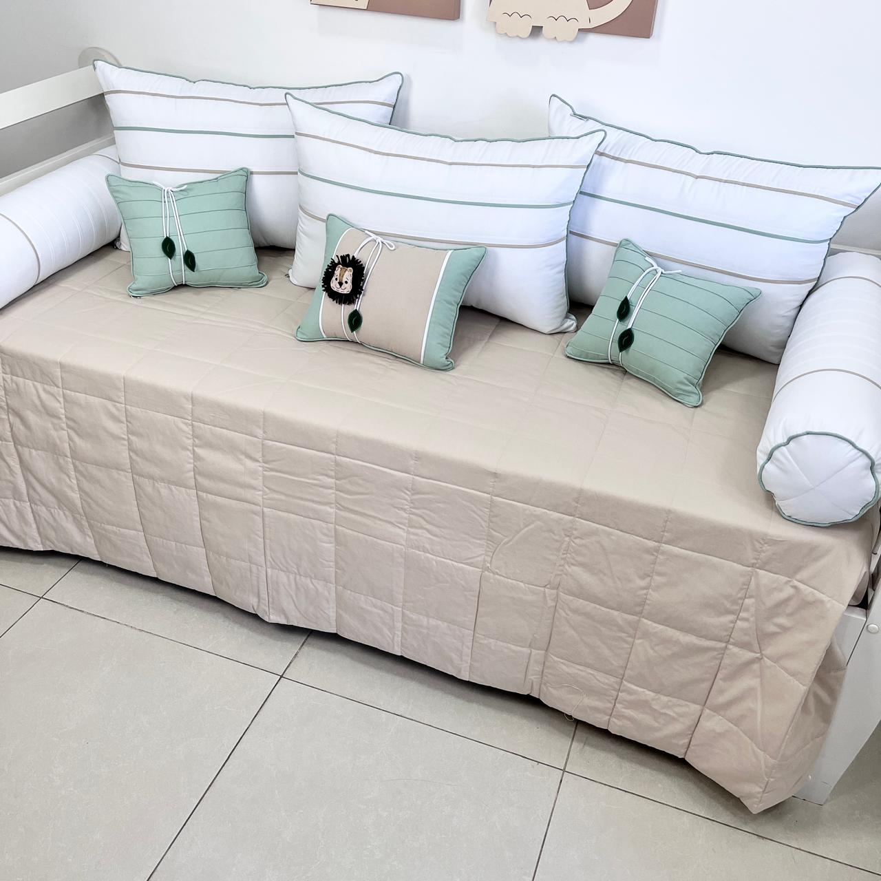 composição : tecido 100% algodão Todas as almofadas e rolos tem zíper (fechecler) para poder retirar os enchimentos,facilitando assim na hora da lavagem, enchimento fibra siliconada.